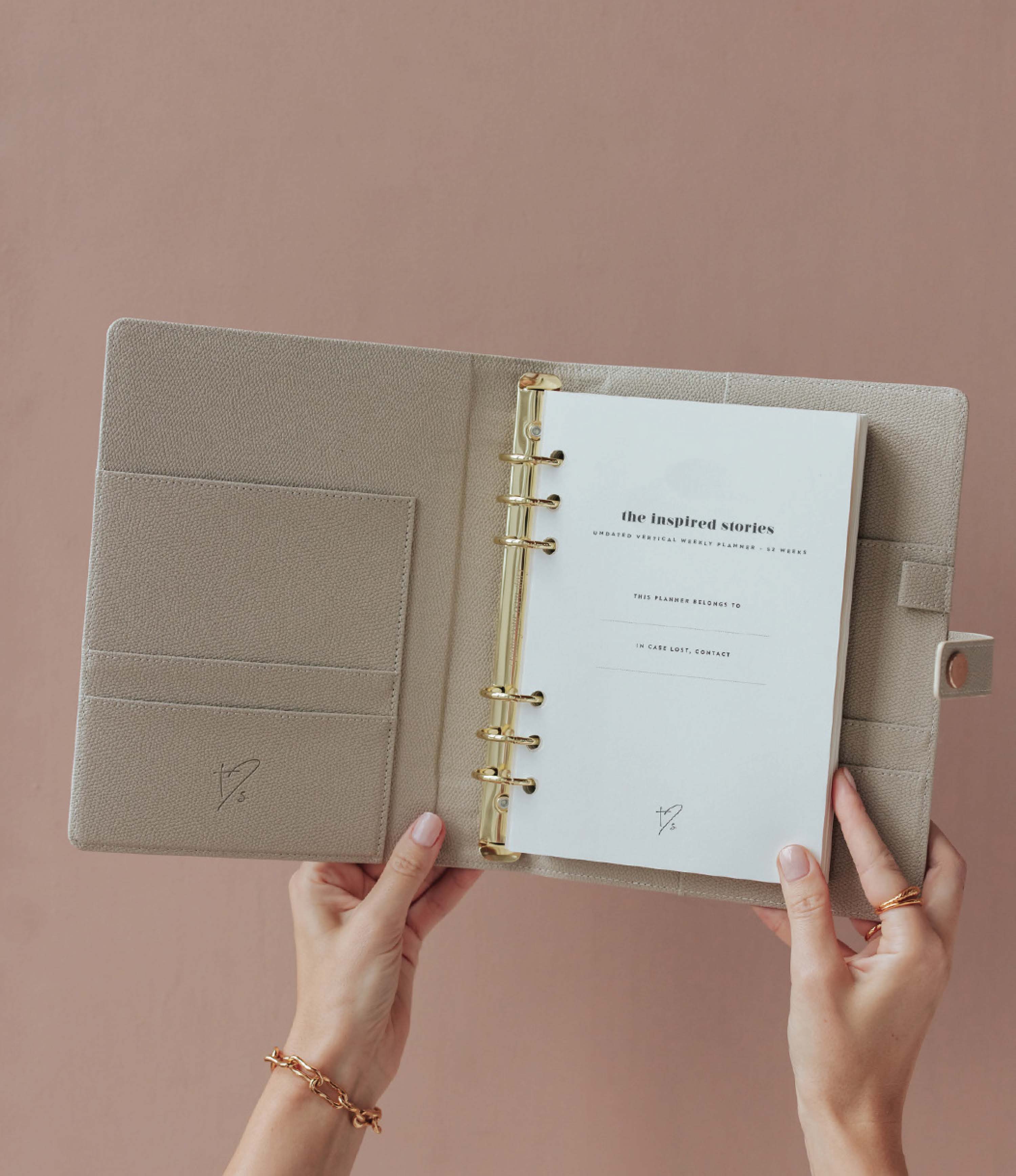 This Ring Binder set is designed to help with your everyday agenda over 52 weeks, and offers more customisation. With a week-per-spread overview, this planner features a vertical layout to provide a daily time schedule for time-blocking to-dos and appointments.
